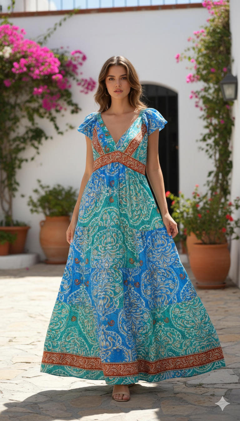 Vestido importado de la India, tiene una hermosa caida, al ser 70% seda.